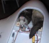 А этот, товарисч, всегда мне помогает все делать. лезет везде, тырит отвертки, пакетики с болтиками, все что плохо лежит… Облюбовал он морду Х8… Как крышка не закрыта и Х8 в пределах досягаемости хоря… он сразу там. Проводит осмотр 😃)
