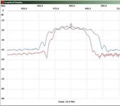 Перепаивал в 1.2 приемнике lawMate родной фильтр F480-2 на новый D480A , заодно снял характеристики обоих фильтров (синий график старый фильтр, красный новый). Все как и ожидалось, у нового более узкая полоса пропускания, на 2-3дб выше сигнал посередине полосы и на 6дб лучше гашение сигнала за пределами полосы.