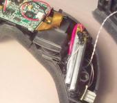 Неожиданно оказалось достаточно места внутри корпуса очков для встраивания туда аккумулятора. Непонятно почему сам производитель этого не сделал. Тумблер включения питания тоже поместился. Для крепления дополнительного ремешка просверлил два отверстия в верхней крышке очков и вставил туда большую выгнутую канцелярскую скрепку. С обратной стороны закрепил поксиполом чтоб не болталась.