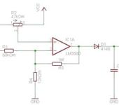 Берем операционник, я использовал lm358, включаем его по даташиту, резистор обратной связи ставим что бы получить Ку примерно 5-6.