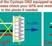 Доброго времени суток! На днях получил девайс темы, версия 2.01 (только осваиваю (компоную модель для FPV), начал с изучения темы, эт я к последующим вопросам в конце сообщения) После подключения всего навесного оборудования и включения встретила меня та же надпись Starting GPS… и все, питание батарейки в GPS модуле было 2.6в - заменил, перемычка на 3.3в была. Лечение было см фото. После переброса проводка словились спутники секунд за 5 (до этого с неправильной распайкой мин 30 пыхтел бестолку)