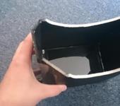 Делал шлем, но т.к. пенокартона темного не было (только белый в продаже), пришлось красить. Потроха внутрь не лезли, т.к. все делалось по “приблизительным” размерам, поэтому пришлось коробку с начинкой приделывать сзади. В общем, все не по плану, как всегда. Правда крепление так и не придумал. То ли кепку, то ли мотоочки. А то результат весит 380 гр., что уже не мало.