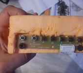 Взял брусок пеноплекса (теплоизоляционного материала, крепкого и лёгкого), врезал туда экран (фото 1-2) и контроллер с кнопками управления (фото 3-5).