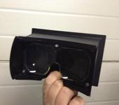 Посмотрел интересную версию очков от скутер-практик-а. Использованы 2 стеклянные линзы. Картинка яркая и без малейших искажений, качество такое, как будто сидишь перед монитором. Угол обзора как в моих очках с френелем. По сравнению с картинкой в моих очках на основе линзы френеля – небо и земля. Какие линзы и как решена проблема со сведением не знаю, автор не колется, типа секрет фирмы 😃, но проблем со сведением не почувствовал. Расстояние от линз до экрана около 7 см, размер очков около 12 см. Внутри предусмотрено место для маленького контроллера и приемника 5.8. Материал 1мм текстолит.