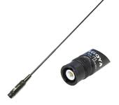 Летаю на полуволновом двухдиапазонном штыре (133/400-470МГц) от фирмы NAGOYA. Стандартный штырь для подобных систем. КСВ 1.32