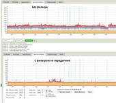 Слушайте, а как вы измерения проводили, я что-то недопонял, почему у вас уровень помех при включении видео уменьшается? Оранжевый - это референсный, т.е. просто шум эфира ничего не включено?