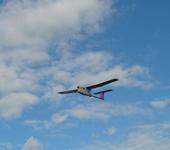 Сегодня облетал Ская с верхним расположением стабилизатора. Прекрасно летит! Ветер пофиг. Скорость в горизонте с боковым ветром 110км/ч. Стоял винт Аэронаут 10*6, мотор Скорион 3014. По сравнению с пенопластовым Скаем выше посадочная скорость. Вес 2100г, размах крыла 1700мм. При посадке пострадало много ягод земляники! Оставшиеся ягоды после тест полётов пришлось съесть. )