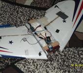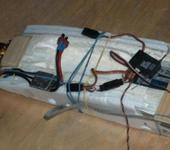 Вкл-выкл и спуск - одной релюшкой (завёл “под левую руку” на РН, ввиду отсутствия такового). Включено-невключено легко проверяется по состоянию объектива при пролёте над собой. Сборка самоля - 3 минуты. Фотик просто вставляется в пластиковый ложемент из уголков с хозмага. Собрано на двустороннем и простом скотче + банковские резинки “наше всё”.