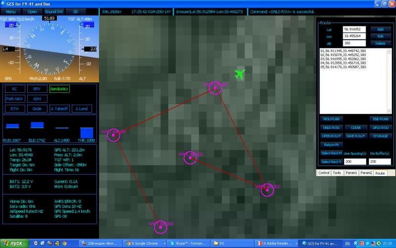 Еще вариант, установите программу 3D Гкс , я от туда забивал точки, просто там считайте и загрузите заново, ну это как вариант. У вас 300 м стоит высота, должен к верху лететь, на всякий случай установите 200 м для проверки.