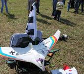 Да нет. Все обошлось хорошо. В процессе съемки ни один оператор не пострадал. Удар пришелся крылом по бленде объектива камеры и горизонтальным оперением по руке оператора. Самолет почти в клочья , но начинка вроде живая вся. Так оператора потом еще от коптера отгоняли, тоже поближе снять хотел:)