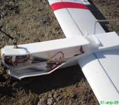 Первый вариант летал бы вполне нормально, если бы не ошибка проектирования, я просто не учел что деревянная рейка легко гнётся под нагрузкой, а вот П-образный “хвост” стал отличной нагрузкой, и видимо с немалым лобовым сопротивлением, от чего самолет летал отлично, правда на спине ))). В качестве аппаратуры FPV были только камера, передатчик и батарейки (без базовой станции), да и то чтобы самолет летал с полезной нагрузкой. П-образный хвост не подошел по “параметрам”, его модификация вроде помогла, но я не успел проверить т.к. из-за отказа передатчика самоль выполнил на отлично садово-огородную фигуру - “морковка”. Следующая модификация, вместо полета рубанула мне винтом по пальцу (косой шрам теперь остался на всю жизнь), и я на какое то время остыл к полетам.