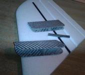 Стык жёсткий, люфтов нет вообще, половинки руля отклоняются как одно целое. Очень не нравится то как туго поворачивается руль. Прецендент с оторванной качалкой уже был описан. Так насиловать серву на пустом месте не хочется, подумываю отрезать рули и сделать нормальные шарниры. Отработанный вариант - полоска от пластиковой бутылки вклеенная в разрез ЕПП на циакрине.