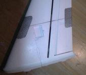 Стык жёсткий, люфтов нет вообще, половинки руля отклоняются как одно целое. Очень не нравится то как туго поворачивается руль. Прецендент с оторванной качалкой уже был описан. Так насиловать серву на пустом месте не хочется, подумываю отрезать рули и сделать нормальные шарниры. Отработанный вариант - полоска от пластиковой бутылки вклеенная в разрез ЕПП на циакрине.