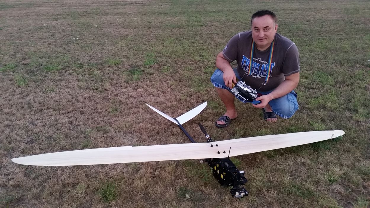 Ну да, есть такой. Самолет второй версии: пенопласт оклеенный бумагой и обтянутый скотчем. Профиль 10% ClarkY. На полном газу с мотором 1450kv и винтом 9х6 на трех банках развивает 100км/ч. Но хочется быстрее поэтому в новой версии профиль будет 8,5% и мотор 1200kv на четырех банках. И крыло будет сделано более качественно. Центроплан бальза и стеклоткань, консоли бальза и модельная пленка.