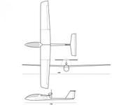 По крайней мере уже летает. Медленно и устойчиво. Биплан. С мотоблоком в вырезе носовой гондолы. Строился как тренер для задач аэрофотосьёмки. Вес 900 г без полезной нагрузки. 100 г камера (MD80 camcorder) и пишущий альтиметр. Летает на 60% газа. 200 г может ещё поднять при полной загрузке носовой гондолы. Сделан из FOAM, PVC tube 20 mm и depron 5 mm. Если захочешь попробовать для начального этапа, сброшу фотки и эскизы. Сейчас строится вот этот рабочий макет. С толкающим винтом, отсеком полезной нагрузки в носовой части, сьёмными крыльями и стабами. Размах 2 м. Материал: FOAM (строительный, депрон, стеклотекстолит, дерево, крафт бумага (обтяжка). Летающая платформа для видеонаблюдения и АФС. Планируем лётную рабочую модель масштаба 2:1 от Moc-Up. Flight samples: