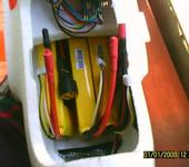 Несколько фоток. Мотор сначало прикрутил на дюралевую мотораму затем к плстмассовой мотораме, отверстия в дюрали пришлось чкть расточить по ширине, акк на 5000 положил просто чтоб размер отсека показать, снизу лежат 2х3000 и заходят под полку. И видно что провода от мотора как раз в перегородке заканчиваются, ну очень не удобно.