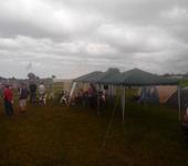 столы и шатры в стартовой зоне для подготовки