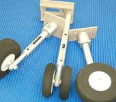 Можно прям два колеса, справа и слева от фюза, подпружиненные и что то типа торсиона через весь фюз. Или вообще фанерная/текстолитовая площадка с механизмом.