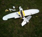 не страшно , кусочки сварить и склеить , у меня гораздо хуже все было, вертикально , метров со 100-200, с мотором, боковые шампуры в земле до половины, и вертикально торчали,самолет в метре от шампуров и обе передние кромки крыла замяты,