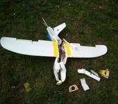 крепежка мобиуса была вклеена на термоклей, и вырвалась со слоем пенопласта, а мобиус был сверху скотчем приклеен, руками выдрать пробовал, не получилось, кстати крепежка мобиуса плыла рядом с самолетом😁