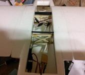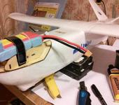 Обошелся без балласта, но аккумулятор пришлось присобачить на фанерную площадку под FPV, внутри фюзеляжа в центровку не попадал.