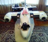 В носовой части кусочек карбоновой трубки вклеен, через оптекатели теплый воздух выходит, там дырдочки. Регули внутри фюзеляжа поставил, было жарко, теперь с этой доработкой нормуль. Акум 11 А. 4 S. Вес не мерял.
