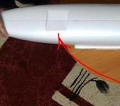 Не надо обрезать. Берете скотч как на фото, выгибаете элероны вниз, клеите скотч сверху, снизу не надо, все. Рули высоты и поворота аналогично только сверху и снизу клеите скотч на руль высоты, на руль поворота с двух сторон. Все красиво и надежно. Летаю на MTD 2 год, часто. Замечаний по креплению рулей нет.