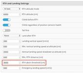 Нда… Залез в настройки RTH, смутило описание параметра RTH abort threshold [cm]. У меня он равен 30 метрам. На сколько я понял из описания: в том случае если самолет не успевает развернуться за 30 метров он экстренно садится. Оно?