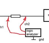 Для проверки этого я подсоединил аппу к модулю через 10к резистор, и лоджик аналайзером смотрел импульсы с обоих сторон (в случае коллизии я должен был увидеть разные сигналы с разных сторон резистора). Но я увидел то, что qrls вообще ничего не передаёт, и никаких коллизий там нет.