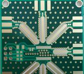 Дорожки не должны быть под маской, и желательно должны быть покрыты иммерсионным золотом. Точки это переходки. Земляной полигон может быть под маской, я его оставил открытым для своих целей. Разводка здесь далеко не идеальна, потому как не была правильно выбрана толщина материала, но основные правила более менее соблюдены.