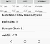 Если это так, то у меня эта же модель пульта и она работает, однако, пульт у меня определяется немного иначе. Точнее диапазон минимальных и максимальных значений не от 0 до 2048? , А от -127 до +127 (вроде эти значения. Это по памяти. Но они точно другие ) завтра к обеду постараюсь найти версию прошивки пульта. Если знаете как посмотреть в меню самого пульта - это упростит задачу, т к. На скорую руку не смог найти версию прошивки в меню пульта.