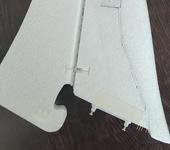 Решил встроить в руль направления, лучше места не придумалось… Со стороны модуля передатчика приклеил на термоклей небольшой радиатор, с обратной стороны прожгу отверстия для вентиляции. Вроде не плохо получилось, но можно было красивее 😀. Поидее антенна сейчас самое высокое место, провода питания и провод смартаудио завил, видео-отдельный, экранированый.