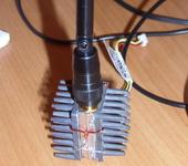 Далее приклеиваем сам радиатор. С торца припаиваем дужку, к которой хомутом притягиваем провода.