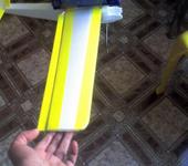 Что бы при изготовлении крыла потолочку согнуть а не сломать, на венешнюю сторону вдоль линии сгиба клеится скотч. С внутрненей стороны по линии сгиба продавливают канавку компакт диском или чем нибудь подобным. Далее можно спокойно сгибать, скотч не дает ей лопнуть.