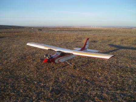Для ДВС полетной массой от 1 Кг (т.е. под двигло от 2.5мл и выше) обычно требуется участок земли не менее 250х250 метров, а для учебных полетов и все 400х400, и кусок ровной дороги длиною не менее 100 метров и шириной от 6 до 15 метров. Конечно, можно запускать ДВС-ку без шасси, кидая ее с рук и сажая затем на брюхо в траву или снег - но для такого запуска крайне желателен помощник.