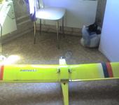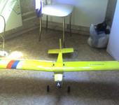 Всё таки полетела птица электрическая !!! Красота неописуемая ! И как положено появилось и "мандраже " и т. д. Теперь по порядку . Будучи авиамоделистом с 70х годов прошлого века , я не стал покупать самолёт ! Я купил вертолёт ! Но не проняло !Шустрый он зараза слишком !Потом построил пайпер по оранжевой ! Полёт несколько сек …и издержки китайской аппаратуры поставили точку в пилотировании .Загрузка пайпера "нормальной "начинкой увеличила вес с 480 до 590 грамм. Он превратился в бешенный болид которым я не смог управлять ! Одно радует ,при любом приморковливании оставался целым !Я решил построить аппарат покрупнее .И за 3 недели с небольшим замутил вот это ! Размах 1300 мм ,взлётный вес с заряженными батареями (3S LIPO 2200 25С),мотор 2213/20 ,винт 10/4,7 ,рег 40 А,сервы НХТ900 4 шт-830грамм !Материал пенополистирол “Ж” +потолочка .Нагрузка на крыло вышла 32 гр/дм2 .Первый полёт (меньше секунды) показал ненадёжность реечки-моторамы ! Поэтому были применены современные материалы типа сталь "СХС"и фанера "самая толстая "! И вот ,когда ни кого не было рядом кроме случайных оболтусов …В окрестностях своей дачки , я решился ! Со свежескошенной стерни на колхозном поле он взлетел в субботу в 16 с копейками ! Жёлтый,яркий ,лёгкий -он полетел как к себе домой !!!8 минут этого на самом деле эйфорического ощущения стоят всех затрат !ЗдОрово!Я им управлял !Держал в “зоне” ! Но ветерок всё же был и пару раз я по неумению завёл прибор на вираже за голову . Один раз его подняло вверх слишком высоко и руки сами замутили великолепнейшию петлю в полнеба ! А потом при борьбе с ветерком и выводе из пикирования крылушки сложились со звуком “хлоп” ! И падение метров с50и !