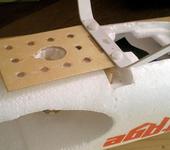 Стойка шасси штатная, чуть рассверлил отверстия и прикрутил на пластиковые блоты.