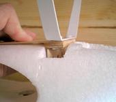 Залил все пустоты клеем “РЕГЕНТ” и лишние поддтеки срезал концелярским ножем да подшкурил малость. Особенности клея: при полимеризации вспенивается и заполняет все пустоты при этом отлично склеивает пенопласт и дерево.