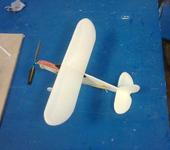 Из модернизации- лопасти из литровой пивной бутылки. Режутся под углом 10 градусов влево от оси бутылки. Так получается крутка. Внутренняя часть матируется шкуркой. Ось лопасти- зубочистку вклеиваем на циакрине с внутренней стороны лопасти. Ступица- палочка от Чупа-Чупса или ушная палочка (она лучше). Ось винта- скрепка. Подшипник- отрезаем полосочку шириной 4 мм от старой советской алюминиевой линейки. В фюзеляже стрингер не бальза, как в чертеже, подходит и сосна. Стойки шасси- сварочная проволока ф0,8 мм, колеса- пенопластовые с вклееными кусочками ушной палочки в качестве ступицы. Если нужно, сфотографирую вживую.