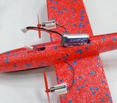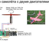 Очередная разработка- переделка игрушки мини планера под два мотора. Планер куплен в супермаркете. В Rhino 3D нарисовал мотораму под двигатель 20Х7, подойдёт так же двигатель 16Х7. Печатал пластиком PETG, можно и PLA. Рамка мотора получается разрезная, что позволяет поджимать двигатель. Внизу рамки есть перемычка- она удаляется после печати. Файл моторамы выложил здесь www.thingiverse.com/thing:5407977 Схема управления показана на рисунке. Я использовал приёмник FlySky FS2A 4CH AFHDS 2A, а для управления двигателями - два регулятора хода ESC 1S на 5 или 10 Ампер. Регуляторы хода и приёмник просто соединил вместе суперклеем, подклеил небольшие пластинки по швам- получается единый блок управления самолётом. В аппаратуре FlySky i6 микшировал каналы CH1, CH3, CH4. Канал CH4, при этом, во вкладке DUAL RATE устанавливается в ноль - RATE 0, стик этого канала CH4 не должен мешать управлению моделью. DUAL RATE первого канала CH1 устанавливаем RATE 60, EXP минус 20. Это устанавливает уровень разнотяга двигателей. Так получается, что задействованы два стика- по каналу газа и элеронов. Можно, конечно, микшировать только каналы CH1 и CH3, но тогда настройки по газу, именно третьего канала, будут мешать настройкам по первому каналу. Вообще с настройками каждым может выбрать сам свои параметры, это зависит от моторов, регуляторов хода, момент срабатывания по газу может отличатся. Главное подпаять сигнальный провод на нужный канал. Если моторы стартуют не синхронно, то можно воспользоваться настройками во вкладке SUBTRIM. Расстояние между моторами примерно 105-110 мм. Можно сделать немного больше, тогда повороты будут резче. Аккумулятор использовал на 400 мАh. Модель получилась немного тяжеловатой, но и двигатели не слабые. В ветер летать будет легче. Но скорость такого самолётика будет больше. Можно поставить аккумулятор полегче, меньшей ёмкости и моторы меньше 16Х7 мм с пропеллерами 45 мм. Тяги вполне хватает. Самолётик легко набирает высоту даже при среднем газе. Тем, кто начинает управлять такими моделями, рекомендую потренироваться на симуляторе Фенис со схожими моделями под два двигателя www.rcgroups.com/forums/showpost.php?p=447325… В сборке модели, лучше придерживаться такой последовательности что бы не испортить планер: собираем приёмник, устанавливаем моторы, подбираем положение центра тяжести с помощью перемещения аккумулятора, делаем нужные вырезы в модели. Вырезы делаем резаком, можно его слегка нагреть паяльником или феном, подплавить стенки прорезей. Каналы для проводов делаются не сильно нагретой проволокой. Грузик в кабине планера- шарик, он не нужен и вынимается. Кабину при этом нужно аккуратно отделить от фюзеляжа. Кабина потом не приклеивается. Вообще на модели приклеиваются только моторамы. Всё остальное- крыло, сабилизатор, кабина- держутся за счёт трения. Не забываем настроить функцию Failsafe- аварийное отключение на приёмнике, иначе при потери сигнала моторы продолжают работать. Настраивается с помощью кнопки на приёмнике и премещением стиков аппаратуры в нулевое значение- это отключает двигатели если связь потеряна. При включении аппаратуры нужно задействовать регуляторы хода, иначе двигатели не стартуют. Перемещаем поочерёдно стик элеронов влево, до “писка” мотора, потом вправо, до “писка” второго мотора.