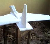 В таком случае, к нижней части самолета можно приклеить рейку сечением 8/4, можно из липы или из сосны.К этой рейке приклеить трапецевидный кусок фанеры, состверственно и к пенопласту тоже.