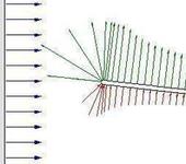 Но оно - в данном случае не главное и возникает как бы не совсем от того, что скорость потока сверху больше, чем снизу. Профиль-то симметричный! Это у несущих профилей за счет эффекта бернулли разность скоростей и давлений возникает… А в симметричном профиле - только от угла атаки и скорости набегающего потока…