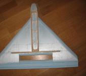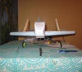 Добрый вечер всем. Весной-летом построил тренера под ДВС с размахом 1700 мм теперь выезжать загород стало неудобно и решил сделать небольшую модель электролета, чтобы летать в парке.Чертежи взял на форуме: толкающий винт, крыло треугольной формы в плане. Появились вопросы: какой сделать выкос двигателя и обязательно ли делать поворотным переднее колесо, как на чертеже или можно обойтись так. Делал из синего пенопласта и потолочки. Заранее всем спасибо.