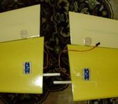 На первой (бело/желто/голубой) элероны обтянуты белым скотчем, остальное все авиамодельной пленкой. На второй все раскрашено авиамодельной пленкой.