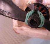 И я еще усовершенствовал крепление на канцелярской резинке - т.к. она накручивается в несколько раз сложенная, что бы витки не сваливались с винтиков, одел на них шайбы под которые и “наматывается” резинка.
