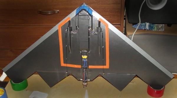 (кабанчик и тягу тоже видно, а серва под крылом)