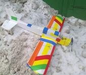 Я нашел выход-приклеил 2 кусочка линеек и между ними приклеил мотораму,которая при морковке срывалась .Переднюю часть фюзеляжа закрыл бутылочной заготовкой .Получился неубиваемый тренер.