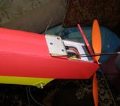 Первый старт с руки – резкий нырок вниз, едва хватило руля высоты для вывода из пике в сантиметрах от земли. Стал добавлять угол установки крыла – стало лучше, довёл угол до 3.5 гр…Проблема таки осталась, стал увеличивать угол установки двигателя, довёл до минус 18 гр…В полёте, на скорости, стало нормально, летит ровно на любом газу. Но на взлёте – всё тот же геморрой.