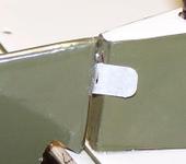 - Вклеиваем петли на эпоксидном клее. Чтобы оси петель лежали на оси качания элерона - отгибаем свободную часть петли на 90 градусов (как на нижней петле на снимке) и контролируем её положение относительно плоскости элерона.