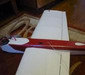 Весит примерно 900 г с движком. Точных весов нет. Аппа на данный момент 2канала. Движок с кордовой футоркой и газ не регулируется. Третий канал поставлю если будет летать (жалко губить лишнюю серву) место под него я сделал.